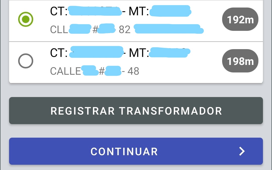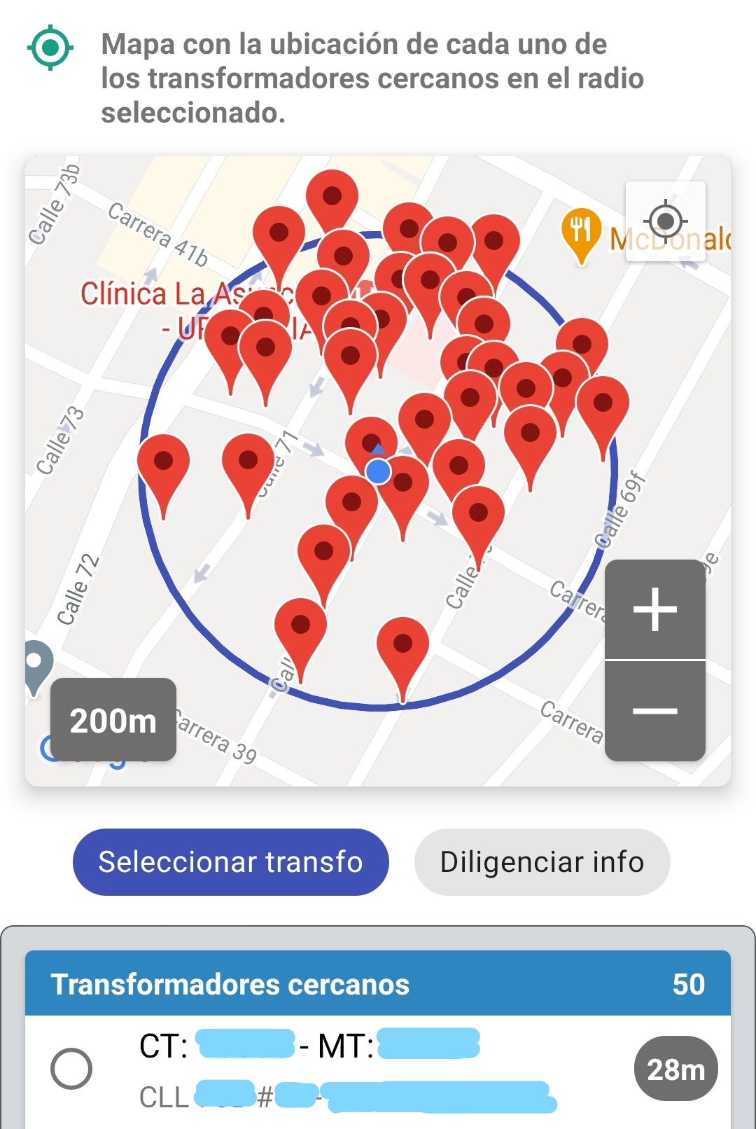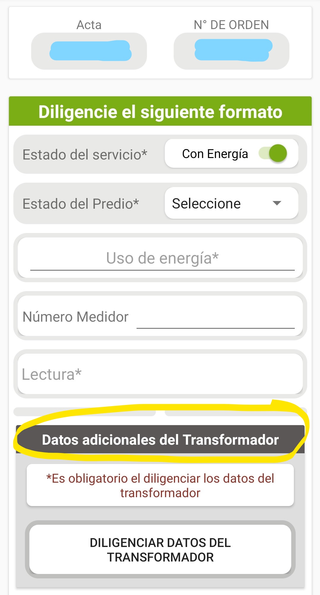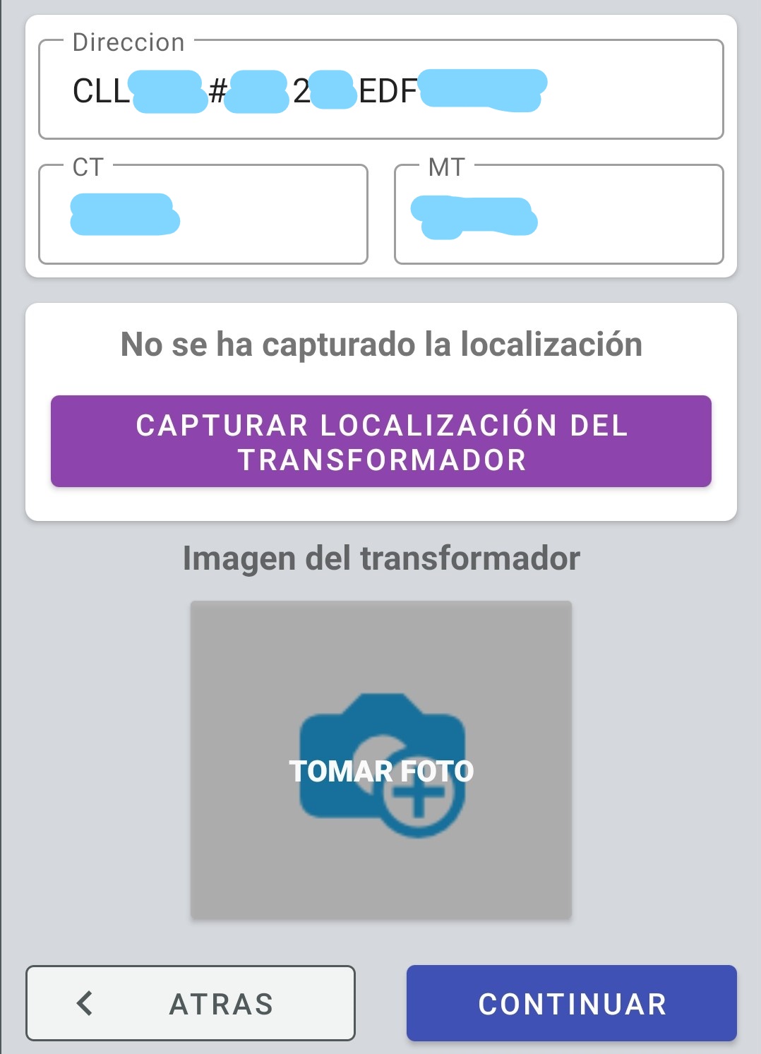 Para las órdenes de servicio TO154, TO155, TO806 se adicionó una nueva vista para la toma de geolocalización, imagen y datos del transformador, junto con una ayuda visual, la cual se basa en la ubicación geográfica de los transformadores con la opción de indicaciones para poder ubicarlos precisamente.